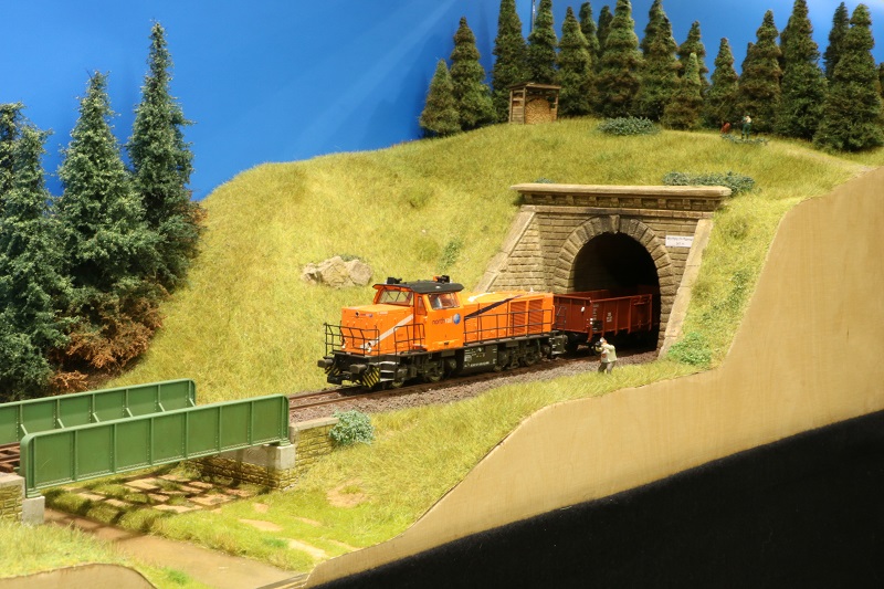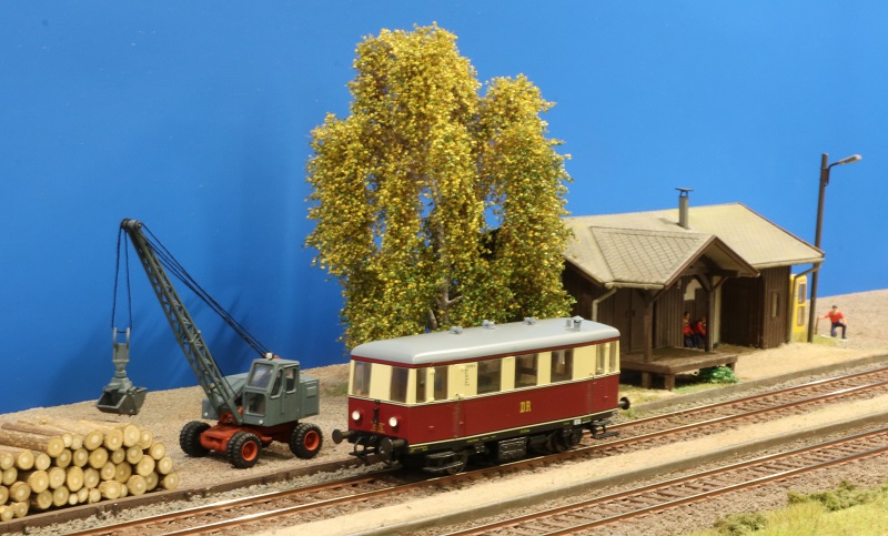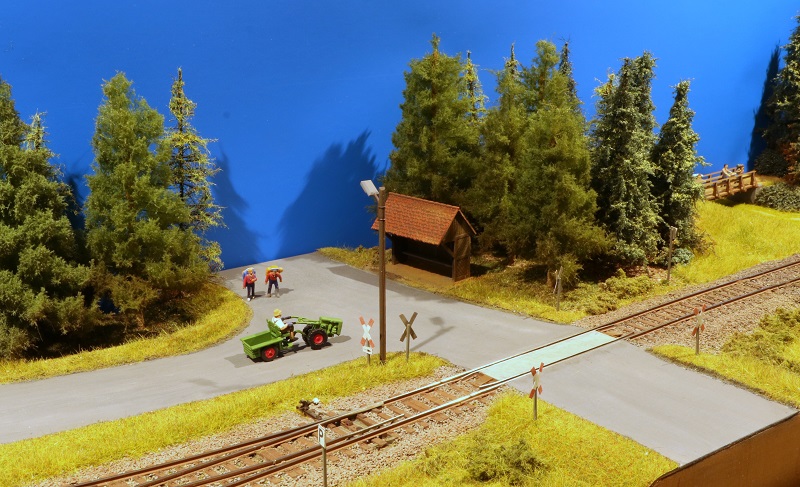 Diese Anlage ist über einen längeren Zeitraum Stück für Stück entstanden. Sie zeigt einen dörflichen Bahnhof abseits der Besiedlung. Eine Bahnsteigkante am Durchfahrtsgleis dient dem spärlichen Personenverkehr. An der Ladestraße wird im Wesentlichen Rundholz verladen. Das Funktionsmodell der Schotterverladung ermöglicht mit seinen beiden Rundsilos die Beladung von Wagen mit Echtsteinschotter. Ein Bahnübergang und eine Blechträgerbrücke über einen Bach bereichern die Szenerie ebenso wie die beiden Tunneleinfahrten, die die Anlage an den Enden abschließen.